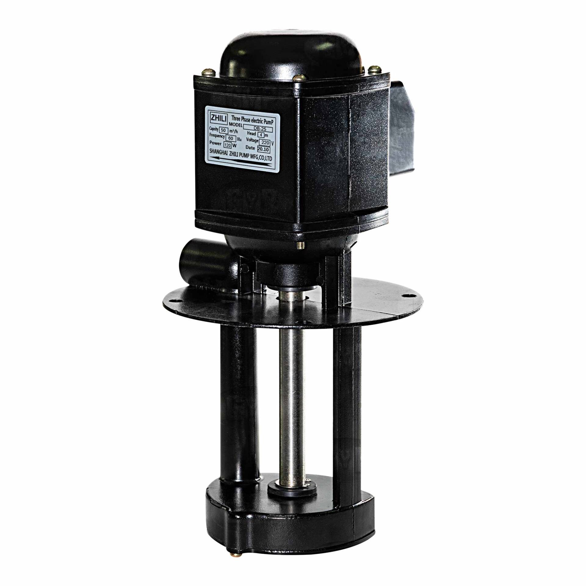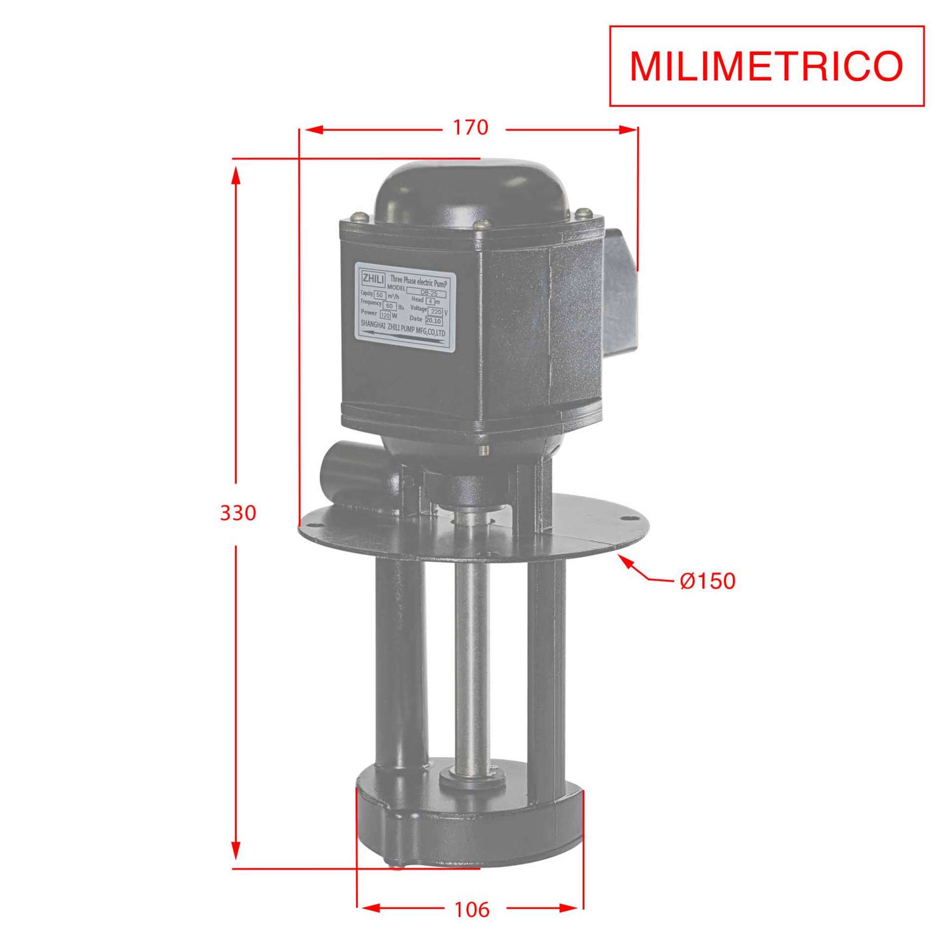 Bomba Grande de Soluble – DB25A – 220 V – 120 W – 25 litros por minuto, se utiliza principalmente para el transporte de soluble en máquinas-herramienta, metal-mecánica, para limpieza, lubricación y los sistemas de filtración. Aplicación para líquidos de baja viscosidad y lubricantes.