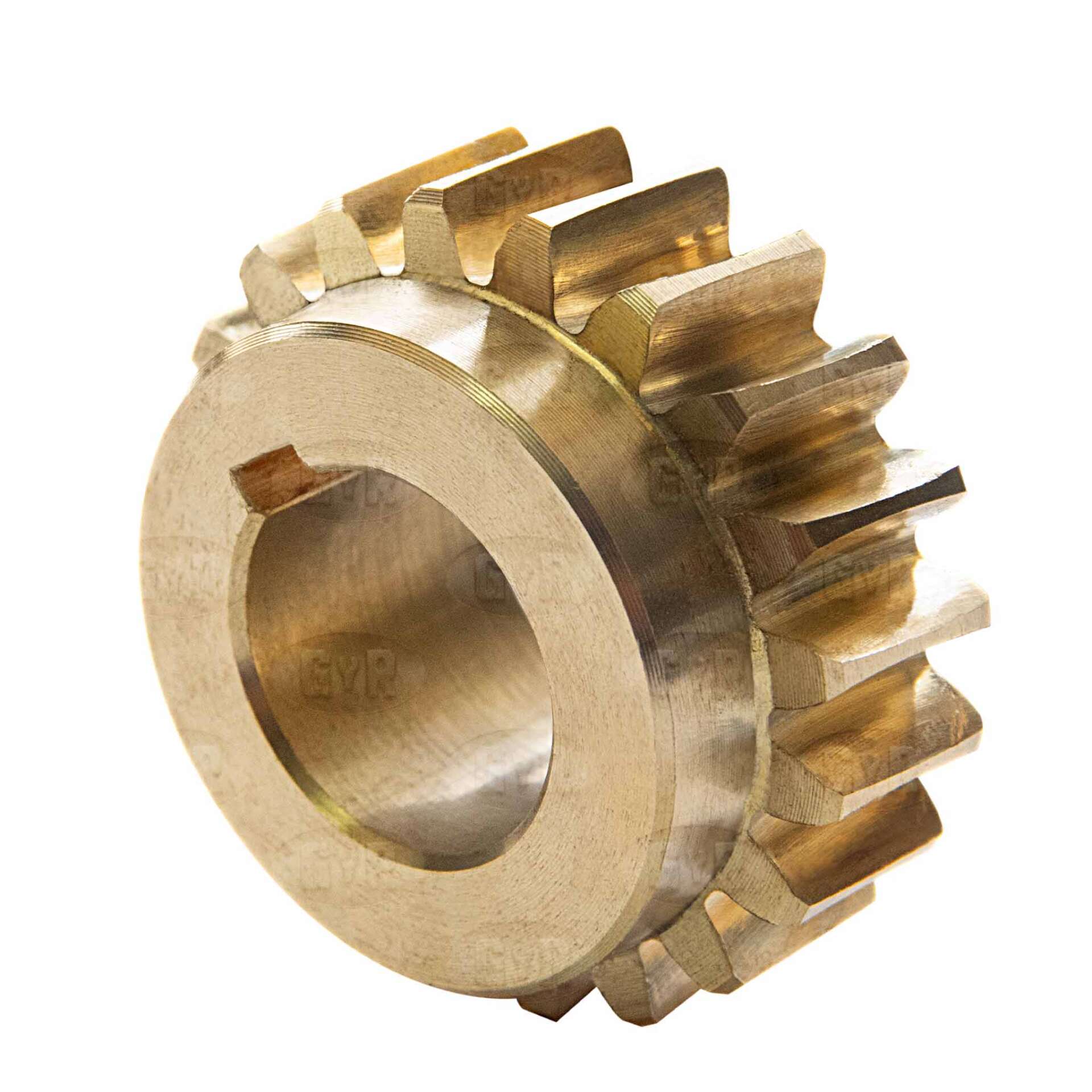 La Corona de Bronce y el tornillo sinfín en conjunto sirven para engranajes helicoidales, permiten hacer transmisiones muy grandes a lento en un solo paso. El dentado presenta su ángulo de ataque de 15°, son aptas para funcionamiento continuo a altas revoluciones y altos momentos de torsión.